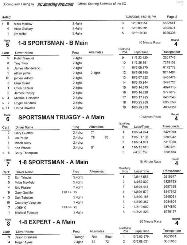 Last weekend I ran in the HARC series sportsman class. My RC8 was running awesome! I got there 9:00am and did a few practice runs. The ESC and the suspension were both working great. The race had 3 qualifiers then the mains. There were about 30 people in the sportsman class with three or four heats. I won all three of qualifiers and also had the top qualifying time. I was very happy with both my car and the way it drove. Many people stopped by to check out the electric buggy that was proving to be a real contender. It was hard to work on my car between the races for all the questions people were asking.
