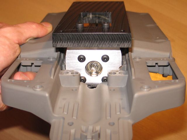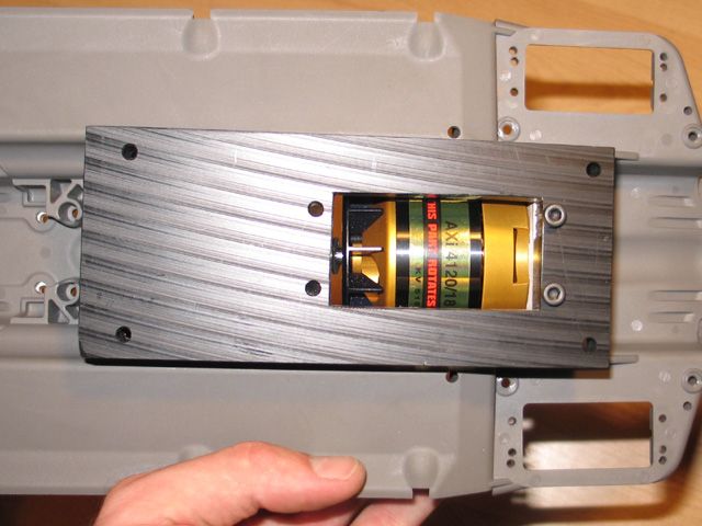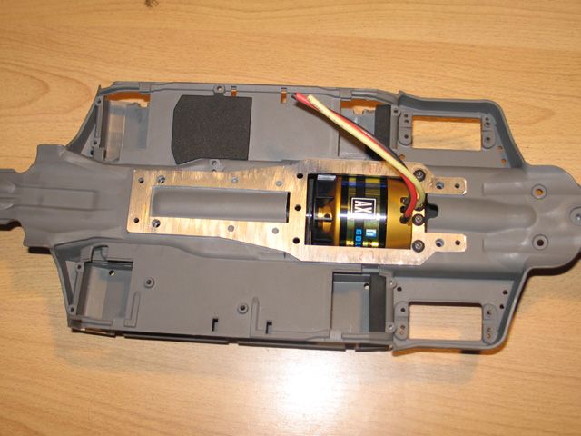 Nice custom work for the direct drive. You should save some weight without a tranny. You'll want to make sure that the bottom skid plate you use mounts to the bottom 4mm holes in the rear bulks. These brace the rear bulheads and without it, the only thing attaching the bulk from the bottom is the 3mm shock mount scews. I found out the hard way that just using the shock mount scews tends to be a bit much under hard driving conditions.