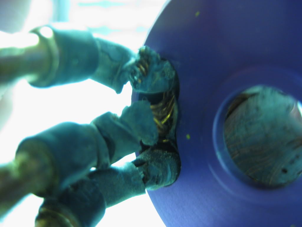Here are the wires/plugs coming out of the motor can, the shrink wrap definitely looks pretty beat up and ripped apart:
