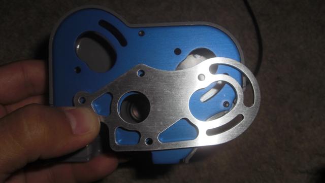 hoober you would need the stock blue revo plate in conjunction with the finned alumnium piece and the motor would sit like this and then youd be able to use both battery trays agian..... here is a stupid paint drawing i whipped up (didnt feel like screwing with CS2) this is what i was thinking, and neil was saying that if your turned your tranny around (its right the way it is now) but if you turned it around youd have the same layout as a e-revo, but here is the dumb drawing of my idea....