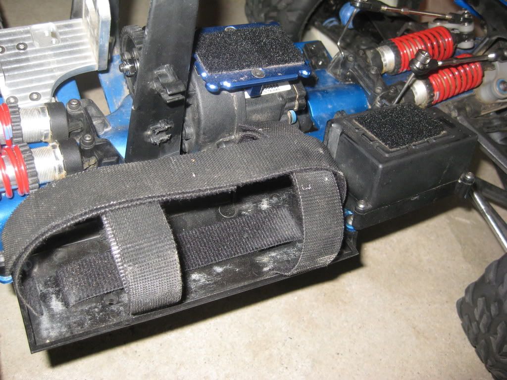 RPM a-arms, RPM hub carriers, RPM bumpers, Pro-Line 23mm hex adapters, Pro-Line single servo arm for mounting a single servo, Tekno battery tray, Tekno radio box, Tekno ESC mount, Traxxas sway bars (front and rear), Traxxas wing mount with Pro-Line wing, RC-Monster motor mount, heavy duty velcro battery straps.