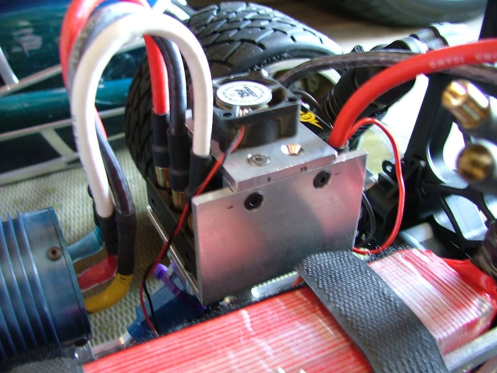 Instead of modding the case, I made a case mount that solved a couple of problems I had with my V1s. It now has a quick change fan on top using a 25mm Muchmore Racing fan that I've had good luck with on my MMs. Second, it keeps the case from popping apart. And third (just in case), it's a fire shield for my lipos!