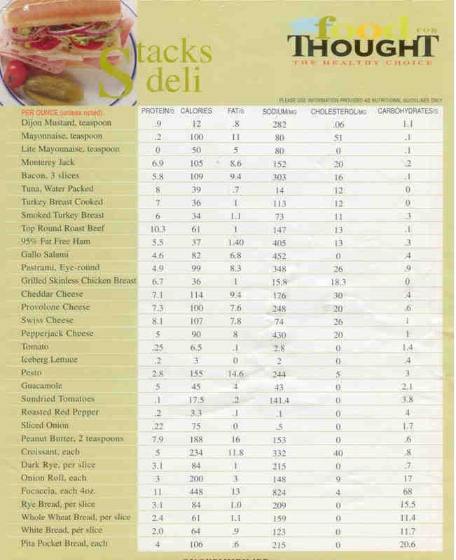 Here are GREAT docs that help explain what your eating! It breaks out the ( Protein, Calories. Fat, Sodium, Carbs and Cholesterol) count for you!..
