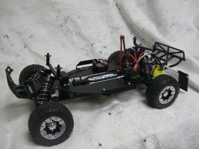 I just finished my slash and it has the Outlaw chassis, Losi eight buggy shocks, Feigao 7l motor (upgrade this later on), RC4WD bead locks, Pro-line carnage body and the mud flaps with Mod 1 gears. I'm still messing around with the set-up but It is all most done...