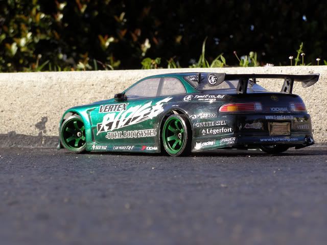 The esc\motor is a novak slyder 7.5. With the correct gearing it could get close to 60, bu the slyder has timing for drifting. The novak GTB system would be better suited for rubber or foam tire racing with timing set at the high end rather than the bottom end to induce easy wheel spin. I will never find out how fast this car goes though, it will live with hpi t-drifts on it as long as I own it, unless someone is nice enough to give me a Pro D :P and with the t-drift top speed is limited to about 10 mph, maybe 15 on a long drift.