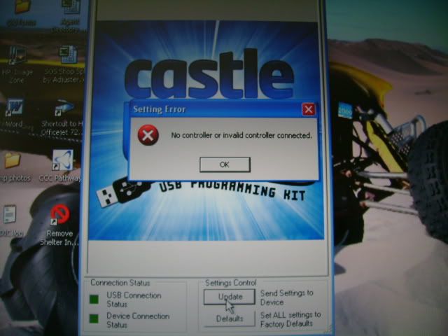 Magman: The problem here was after installing the latest version of the Castle Link, when you open the Link it still thinks it's an older version (You can check be clicking Help > About). The only way to fix this is to uninstall the program, and reinstall it to a different directory on the computer. This problem is a little different because it won't allow any controller with newer firmware to connect, even though you have the latest version installed. The other problem was only with sidewinders with a specific firmware version (V1.15).