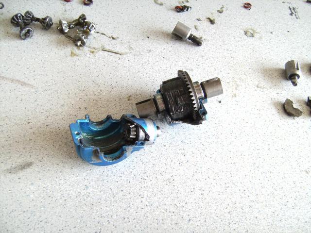 I'm having a small problem with the diff pins in my lst2, and looking for what you guys have run into and what you did to fix the problem. As the pics show I keep shearing the diff pin into 3 pieces. As you can see one side gear and diff output is split in half. I believe that one was from landing a jump under power, but the other two I believe just broke.