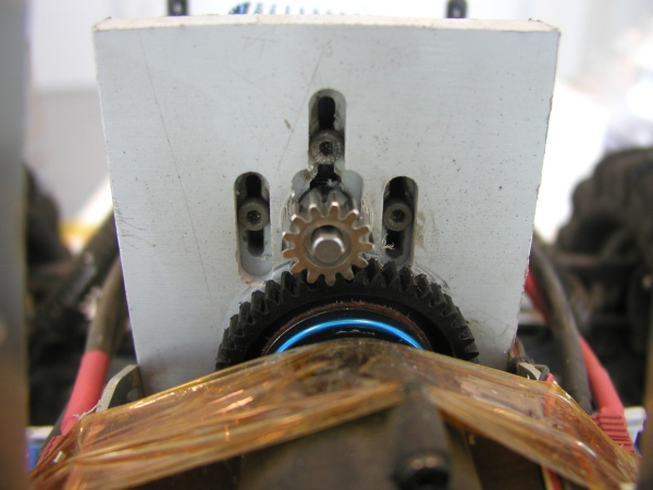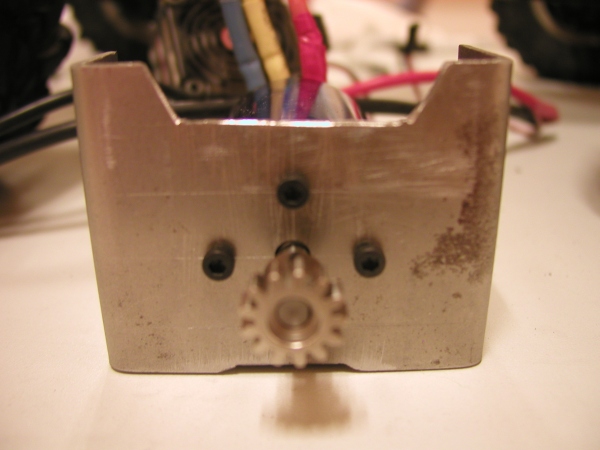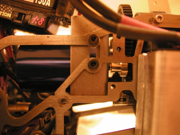 Here you can see the slot. Placed a washer on each side of the mount - it slides quite neatly. I dont have a ton of adjustability... but I can gear this guy from 40-55ish MPH with a 47t spur (not counting ballooning in).