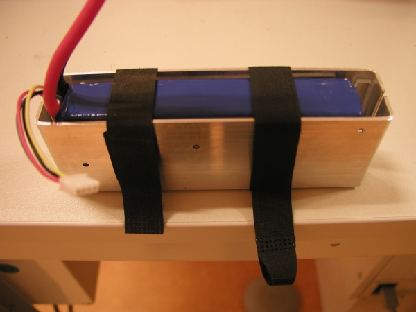 Added a strip of velcro to the bottom of the tray and the bat. will have 2 velcro straps around each tray. The straps are from lab top PSU's... they are used in order to manage the cable length.