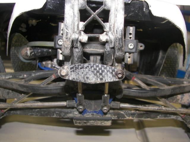 The rod ads strength and rigidity to the body mount but the rod is still the weak point. Either the rod will bend (or crack in the case of the CF one) or the ball ends will be pulled out. I have seen aluminum chassis' that were bent upwards and those bulkheads ruined because the M4 screws were pulled out of them when the chassis bent. That rod is a mod that was brought to fix that problem, it has proven to work very well ever since rear wings were introduced to the Revo.