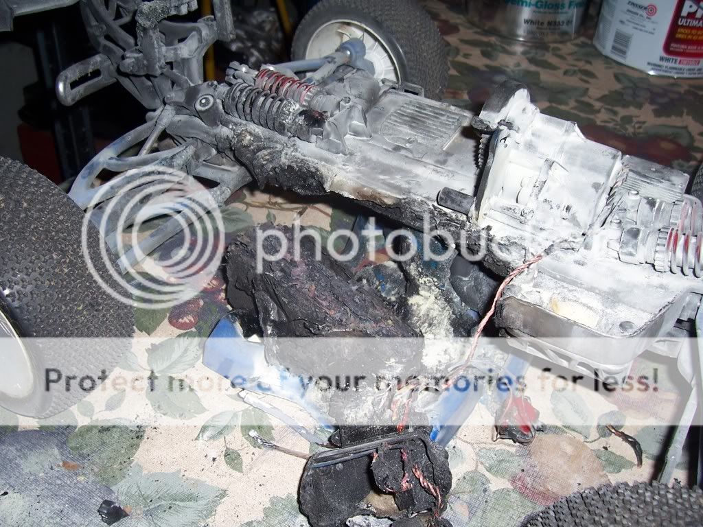 I feel your pain. I too had become very "layed back" when caring for lipo's. So much so that I had been charging in my trucks. This was a Maxamps 6500 pack that had been in a hard head on crash with my 1.1 van tire. I had been having an mgm esc braking issue. After the crash, the truck sat on my bench for about 4 hours and no I didn't even check anything , I got ambitious after the 4 hour break, charged up the one pack (all seemed ok, I did balance charge with a 606i ) It took about 50 minutes and put 5000 mah into the pack.( I came back 90 minutes later , charger said complete and all seemed ok). So I put my charger on the other side, went upstairs and about 15 minutes later......BaBoom, Not just fire, a big bang . By the time I realized what had happened (and got back downstairs) all the big flames were done and I was left with a smoke filled basement, a bench on fire as well as a whole buch of other things. I too was very thankful Kiddie was there to "put out the basement". I know better but had just got to use to not having problems........Never again !!!!!