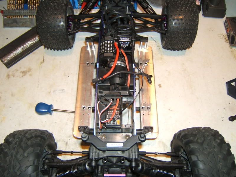 Well I built some battery trays for it, doing away with the ugly stockers that I had to cut up anyways. Probably going to get them anno'd black eventually. Should be getting the new body next week too, diffs are in but can't pick them up till monday...Just waiting on wheels now.