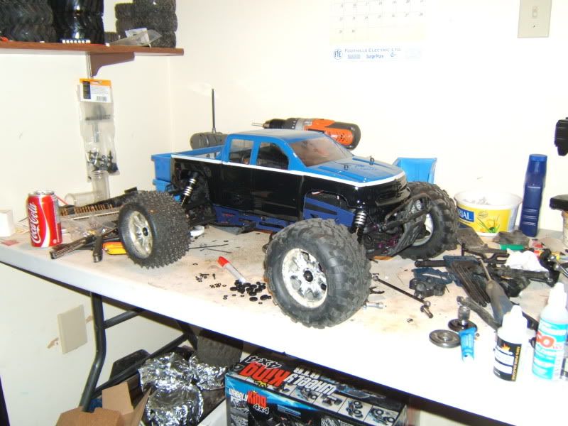 Losi 8T 1.0, Savage Flux - XL style, LST XXL, Muggy, 3.3 E-Revo Conversion and sitting outside 425hp, 831 Tq Dodge Ram Turbo Diesel. It SMOKES
