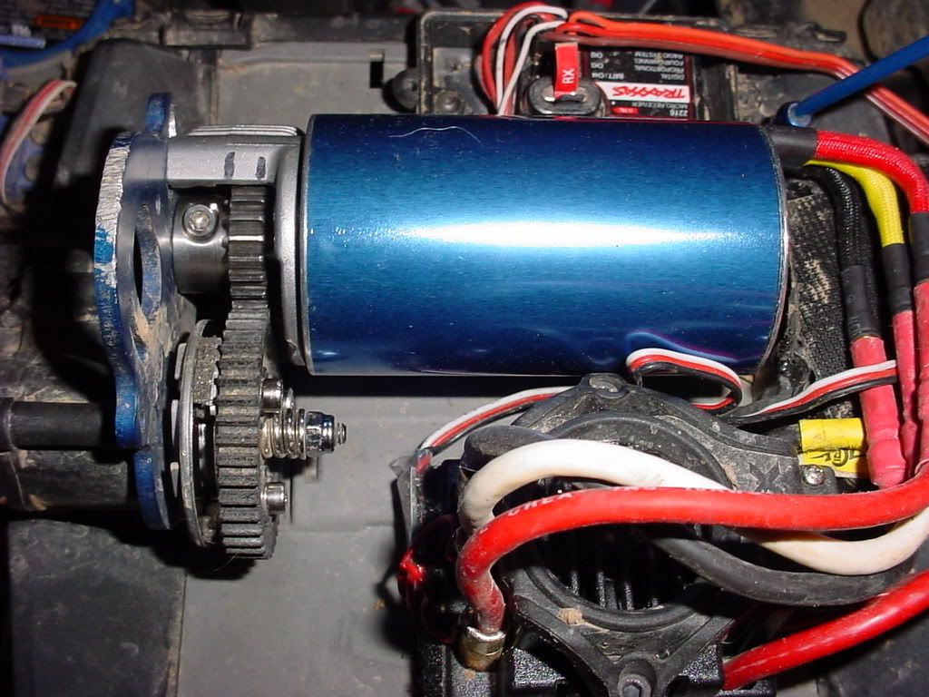 After much work on the aluminum motor mount in the E Revo, things began to fit.