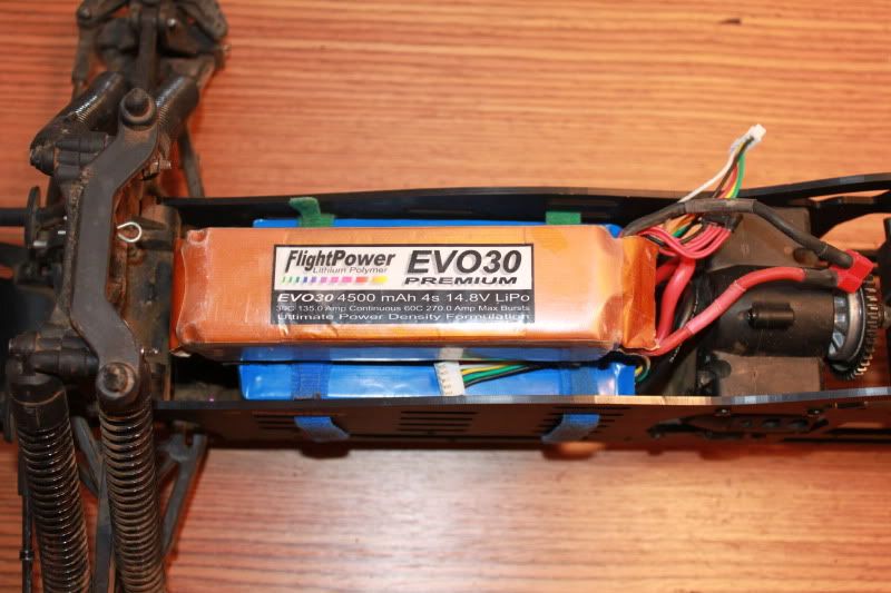Here are some battery location pics. This is two 4s 20c 4000mah packs that will be run together at 4s 40c 8000mah. Should have great run time.