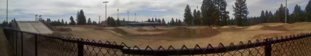But of course I had to take the picture from OUTSIDE of the fence. It is a brand new BMX track they put in over the summer.Its a lot bigger than it looks in the pic. Has really high banked corners and the jumps are tall but not very steep. It looks like it will always be locked unless there is a scheduled race. Bummer.......
