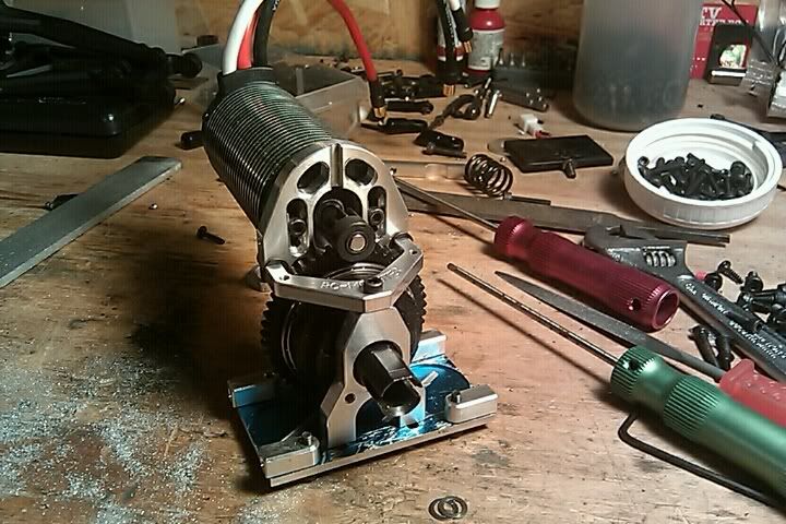 One note: I am using the 50T mod1 spur on the Slipperential. I had to file the hell out of the top plate to clear all the slipperential spur. Also, the tension ring for the diff is also large, so a lot had to be cut out for that to clear as well.