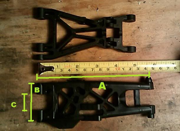Break out your rulers gentlemen! I am trying to find a good candidate for a replacement arm for a savage wide arm conversion. I am looking to get some measurements for some common and widely available truggy arms.