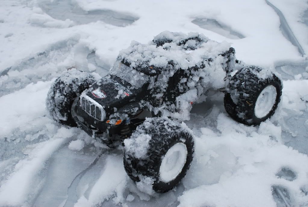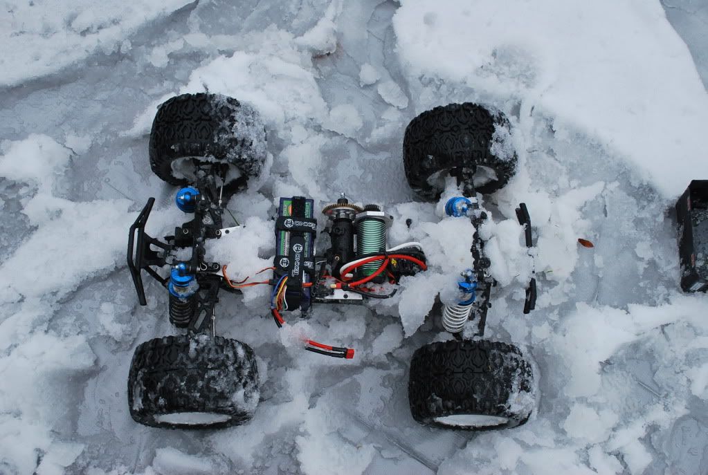 Well that was fun, it snowed for a few days then yesterday it just rained alot. Now its like a big slushy outside. I ran for a bit with the 6s on my xxl and it was a monster. even in the snow it was popping wheelies. After about 10min it stopped and sounded like I lost a pinion...but upon further investigation I melted the slipper. I thought it was kind weird until i picked up the rig and I realized it had to weigh 30-35 lbs. Im not exaggerating. I about shat myself when I picked it up out of shockThis was not snow it was like a block of ice thru-out the rig and packed into its massive wheels.