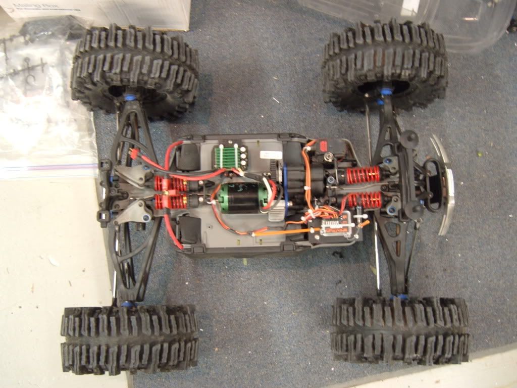 Everything works great, and I manged to snap a welded cvd shaft, I was jumping curbs. Must do around 30mph in 2nd gear. All temps are great, and it will almost wheelie. I have the punch control set at 50% and may well go up to 75%. No real need for tons of acceleration in this beast, especially with me on a stick radio controlling it!!! I am getting better, but it still feels weird to not use a wheel radio.
