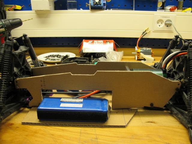 More or less ending up in a G-Maxx layout I think... Question is if I should keep the cut out and try to get the bats as close to the dogbone as possible or simply use the TVPs as sidewall in the battery "tray". Having the bats outside would leave plenty of room for the wires ;)