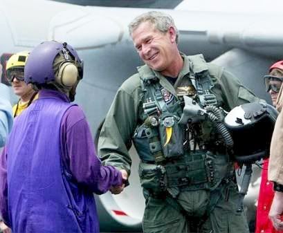 Now, if Obama was flying around, repelling out of helicopters into press events dressed in night vision goggles and body armor-stuffed spandex suits in front of giant, 2-story banners that read "UP YOURS, BABY!", then I would be quick to join the criticism.