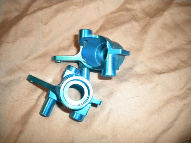 Here we have a pair of OFNA billet front knuckles for the king pin suspension on the OFNA 9.5 series vehicles. These are very nice pieces and well machined, very sturdy. Used, they have some scratches.