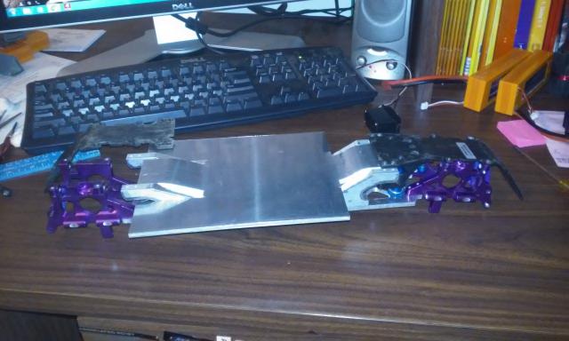 Well I finally had a chance to get the mid/battery plate rough cut & bent,I tried the 3/16 i originally planed since I already had it & got some time & the weight wasn't near what i thought it would be,Still need to drill for mounting,remove some weight & get the final shape down but its looking pretty good Here is a mock up as it is so far.