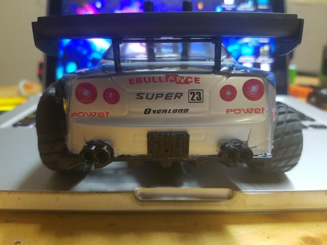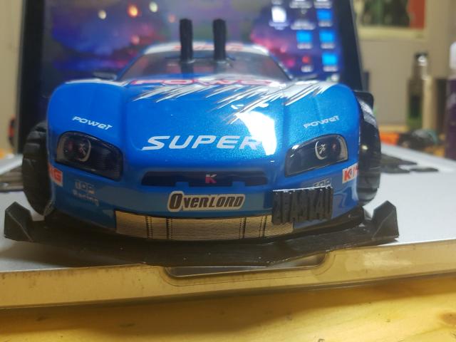 Added a front spliter as well as a rear diffuser, rear diffuser is glued in place with shoe goo, the front is not yet attached. I think im going to trim a bit off the front of the body, Its fairly low sitting and would like a few more mm's of ground clearance.