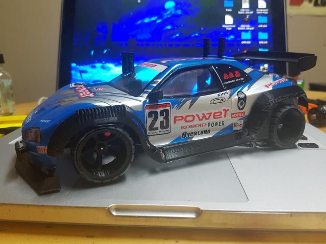 Made some progress on the body. Fixed the body posts so now that the body sits nicely I decided to do some body work on it, make it look more scale. Not quite finished yet, I did the rear, side, and front widebody pieces separately so I could piece them together and made changes.