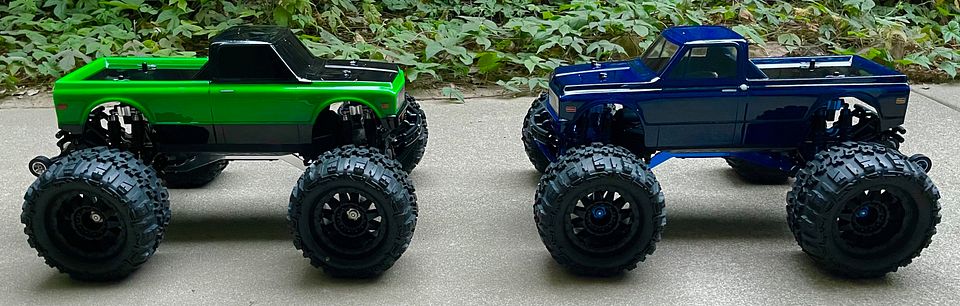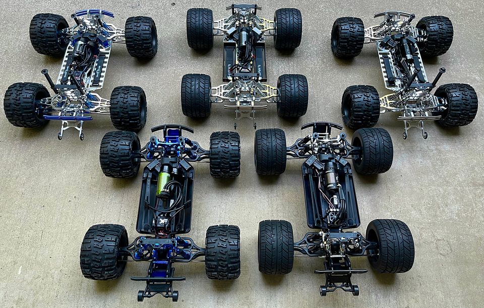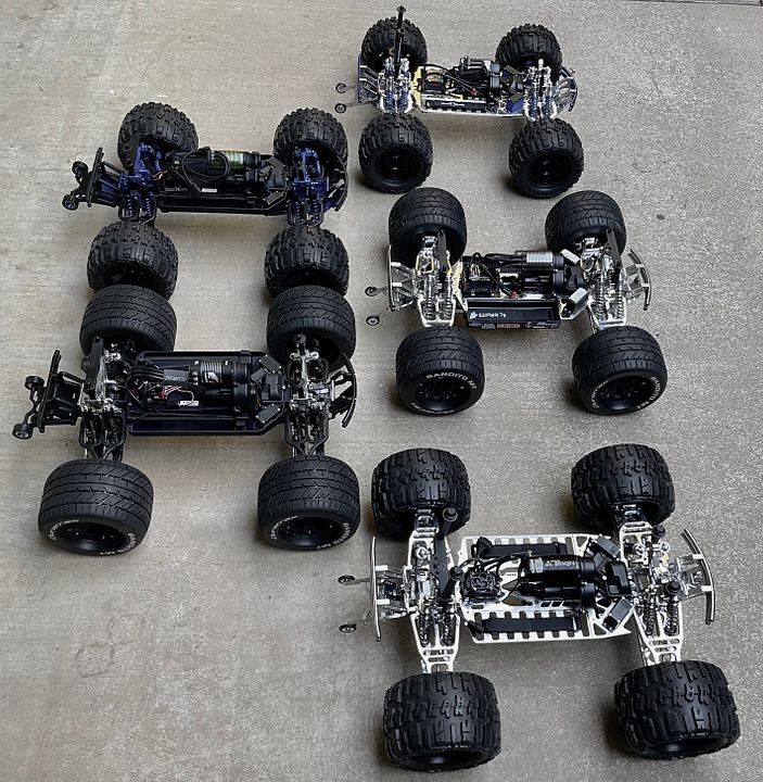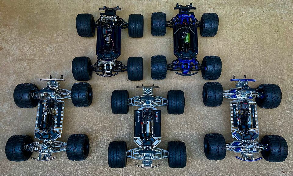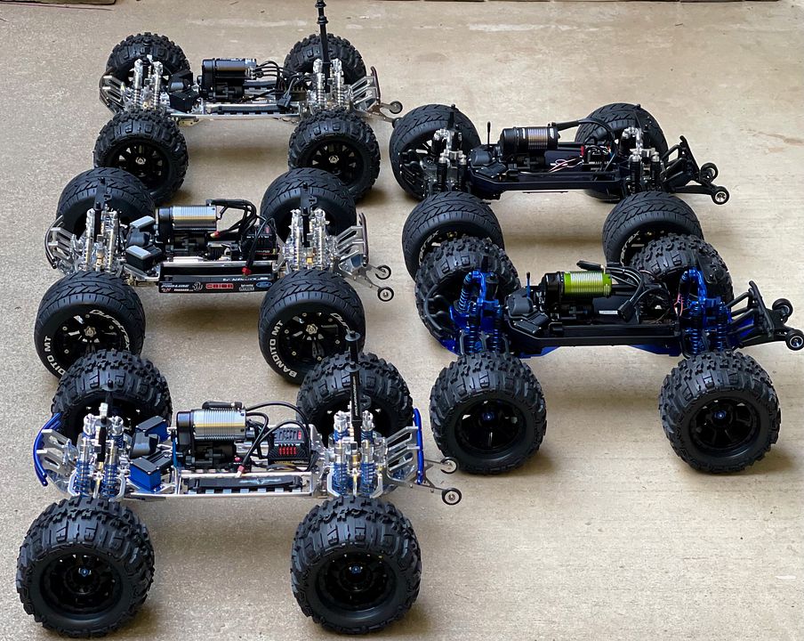 Those two E-MAXX's in the background with the plastic chassis are the ones.