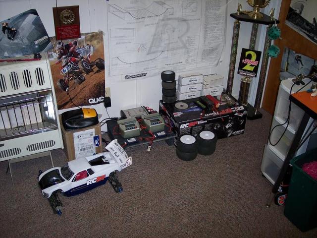 BUT only 2 more months forsure this time and ill be moving into mine and my gf's new house which will be and hour closer to the track, and an hour from the parents  , the house also has a long narrow storage room (about 16x6) that im claiming as my "workshop", ill also have my race trailer there so ill have tons of room and my bedroom wont smell like tires, ca glue, melted plastic, dirt, motor spray, and bearing oil, paint, and shoogoo...........