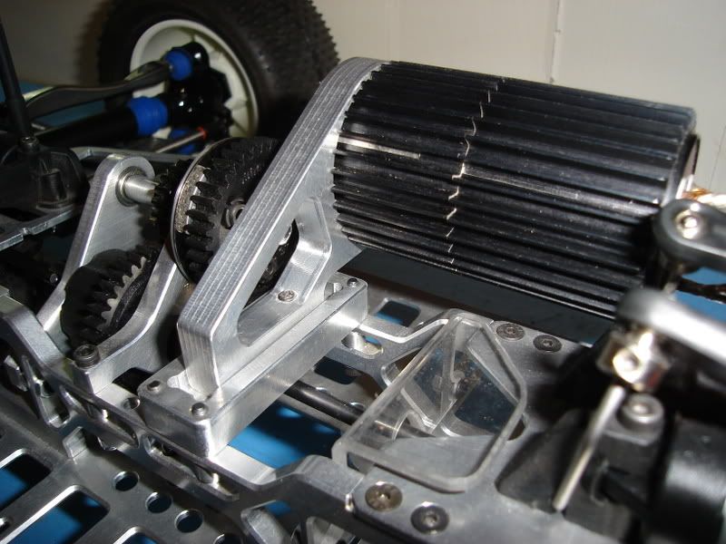 The sexy motor mount. Gear mesh is set from below, nitro-style. The whole mount can slide from side to side.