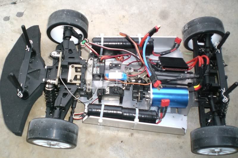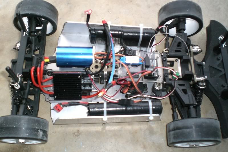 this pic is of the living beast after her first run. everything seems to be working, except i didn't hear it shift gears. the roads are wet right now so i couldn't get it going very fast, and i didn't run it long as you can see in the pic it was getting a little wet in the car. i thinks its going to be pretty quick once everythings all set and 2nd gear pops in.