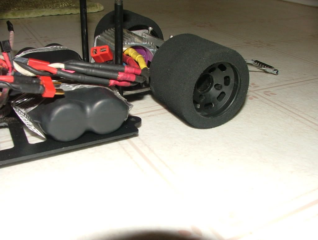 I went back to 48P gearing, and will run 4S. Refoamed and trued the TM nitro wheels. Gonna need all the traction I can get. Wheeliebar should work better now, with all the ballbearings as wheels and enough flex to keep the rear tires planted at launch. Motor choice is a Lehner Basic 5300. Previous motor was a 9T hacker C40.