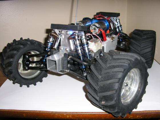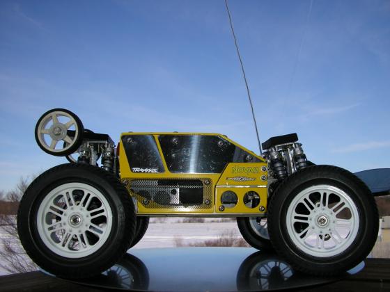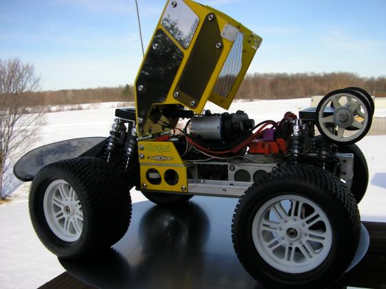 These are some before brushless shots from early 06, did yellow for visibility, never really happy with the look overall tho... I don't remember how many stick packs I burned up trying to feed those damn Titans, and I don't think it ever broke 20 mph. 2 speed was a necessity then, first gear is useless now unless I go way taller- I like that kind of evolution ;)