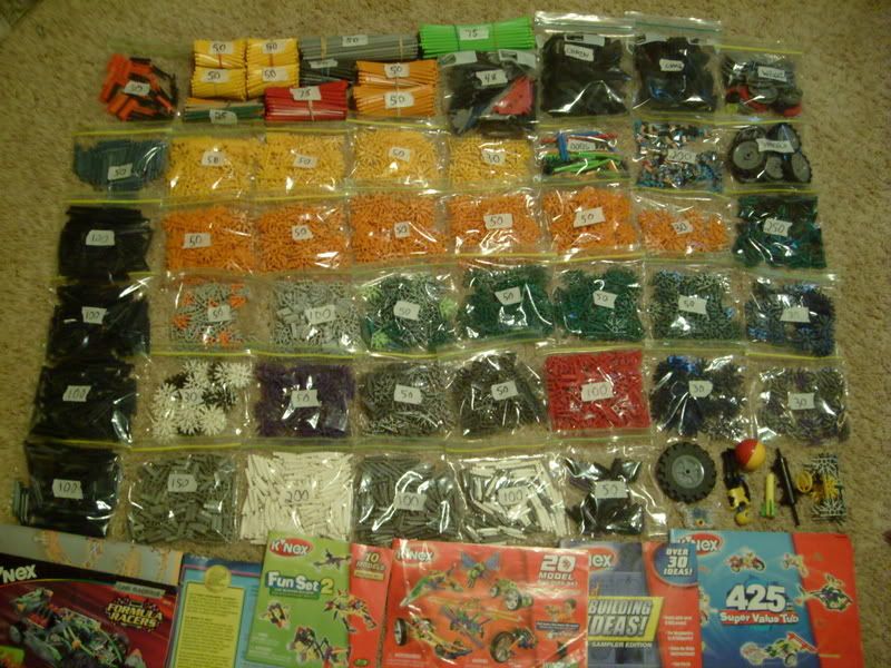 I'm counting all my knex at the moment... I'm at like 1500 and I've only counted 5 diferent lengths of rods... I still have all the little ass peices and bigger connectors.