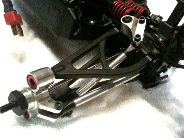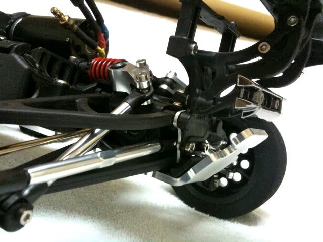 great looking project dude. keep it up. its gonna be a fast lil b*. i have done a lot of working with carbon and there is a way to get the kickup and and bends that you need. get a propane plumbers torch from your local hardware store and once you have cut your basic chassis shape use the torch to heat the carbon. be sure not to get the hot "point" of the flame to close or it will bubble the carbon. practice with some scrap pieces before you do the actual chassis you will use. anyway heat for about 5 minutes from a few inches away. then proceed to bend the chassis to the angle you need. i would always use small clamps and after i bent the carbon i would clamp the carbon to the stock aluminum chassis so it will cool in the desired position. you will lose about a degree of angle but this works. i have done this with several 1/8 conversion and i race and bash hard and have never had one break. you will be fine with that. i would use a 2mm to 3mm carbon. also, after you have shaped your chassis you can cllamp to the stock one and use a sanding spindle on a dremel tool to go around the edges of the chassis and shape your carbon to the exact size of your aluminum chassis. good luck with the project and keep us updated.