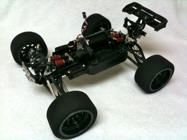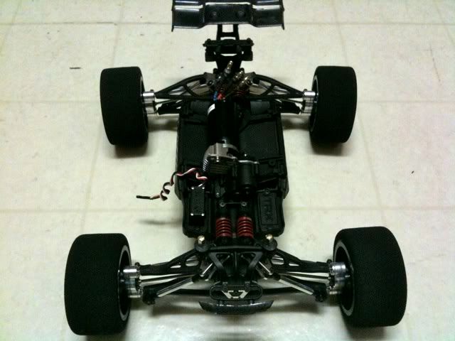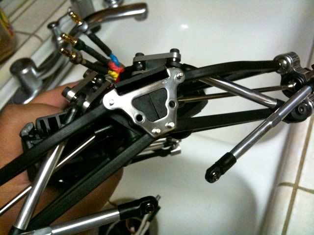 Up in the air with the motor still. That's actually on hold until I figure out how to design this CF chassis so I have some clearance between the shock mount and the motor.