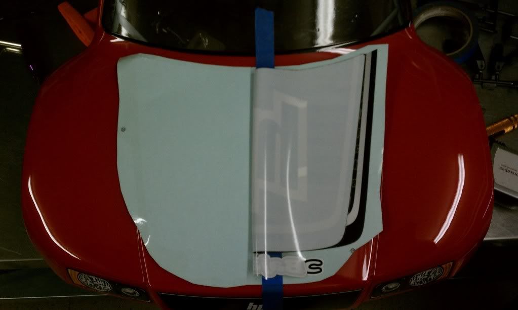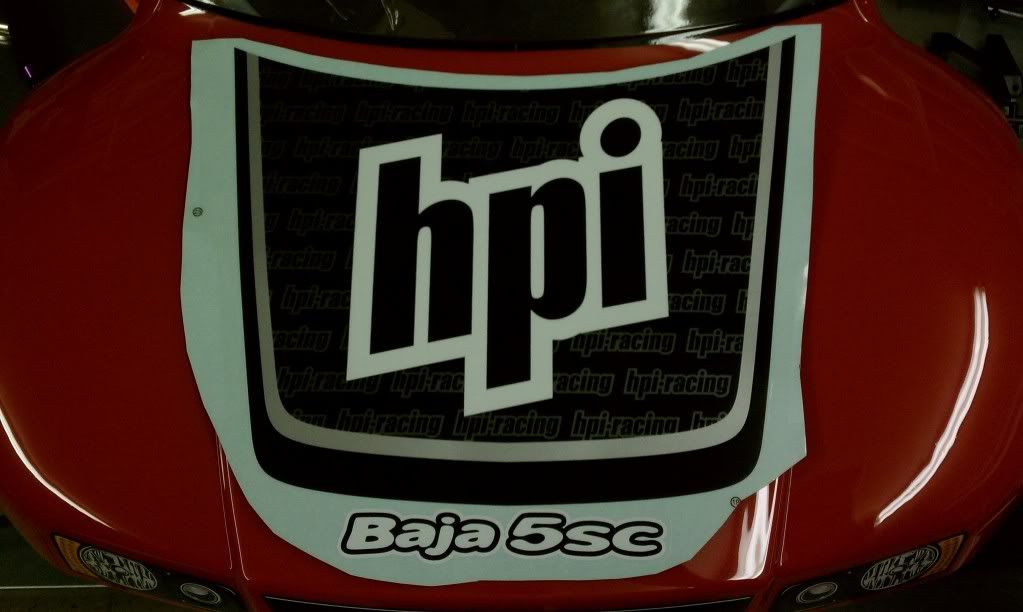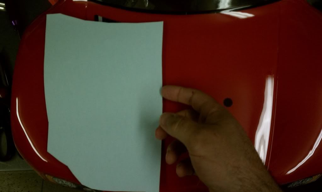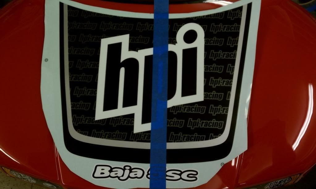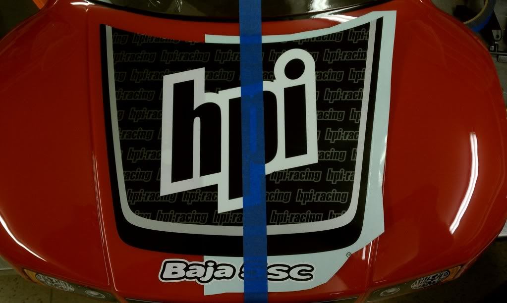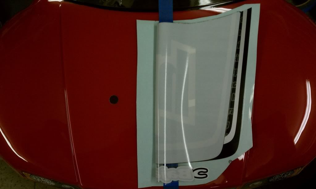 First thing you need to do is cut as much of the excess backing from around the decal so you have a better vision of how it is going to set. Proceed to place it on the location that you want it to be, in this case, the hood.