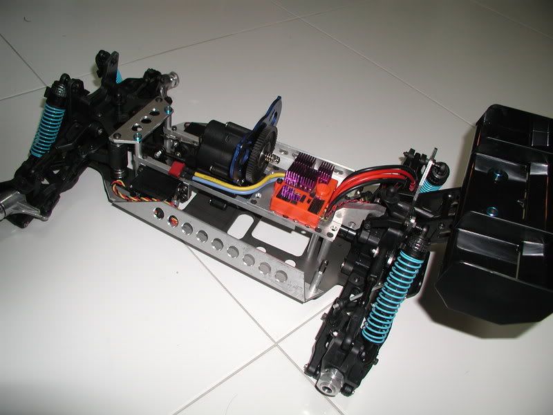 it was then i had to accept it...... this is not working out....so if i can't lighten it further...i have to increase the horsepower somewhat...so since i aint gonna spend good money on a good BL system and lipos...i'm just gonna accept the fact that this tuggy will be a slow critter..hahahaha...