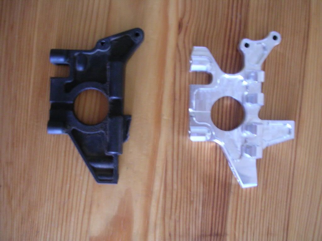 I see what your problem with the hinge pin being too short is. The extra bit of aluminium on the right hand side (in the pic) shouldn't be there. The arm should be in contact with the e-clip, that bit of aluminium means the hinge pin (presumrably supermaxx ones) which are designed for the stock bulks, are not long enough. There is no problem with having the extra bit of aluminium (it probably adds strength - but FLM should have added the right length hinge pin.