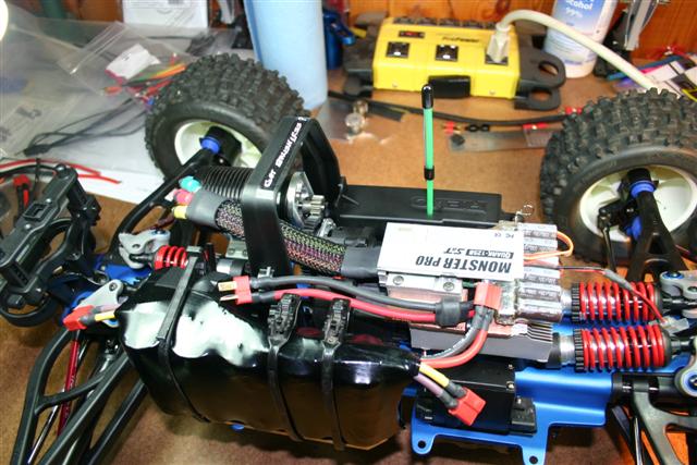 Anyways, I ran it for the first time today because of cold rainy weather and it performs great! It feels very light and agile compared to the maxx truck with 7s2p... I was running 7s1p this run. I used the eagletree in there as well and found the voltage drop at ~70 amps is around 19 volts (from 23v nom.) so right around where I thought it would be, but obviously lower than what a guy would like.