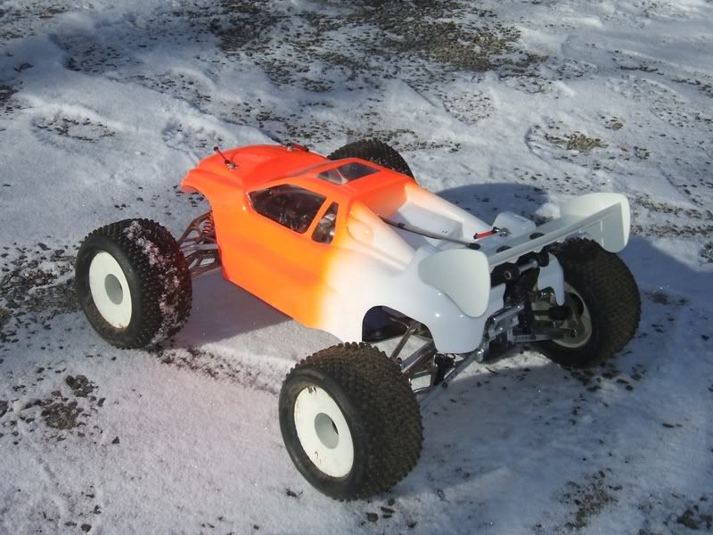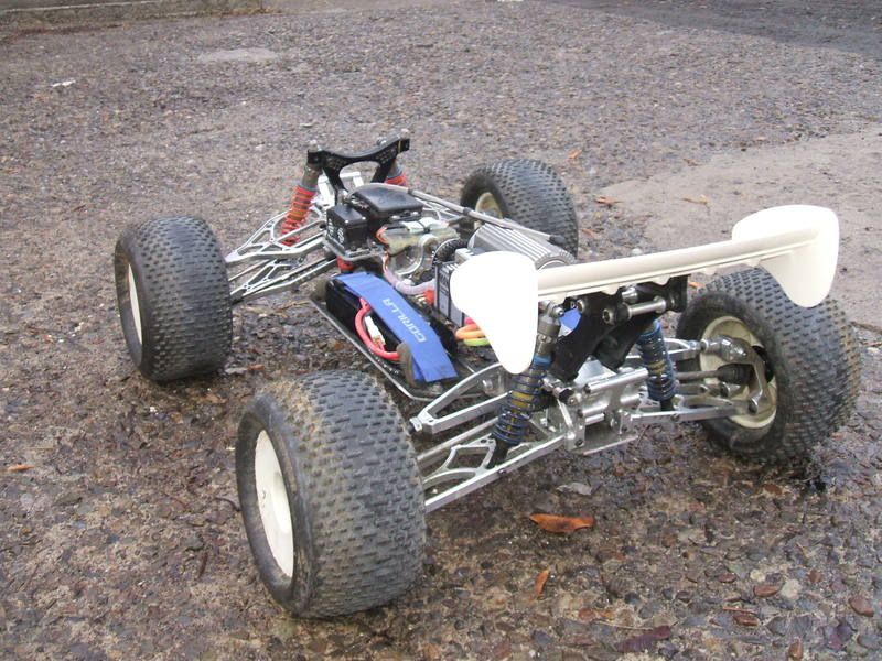 here is my ride. it has changed a bit and is almost complete agian. I got the new quark today and hope to have it running soon. New updateds include(not pictured), new quark, cc bec, rpm skids, different springs, different battery hold down straps, new wing, and a new setup for the electronics.