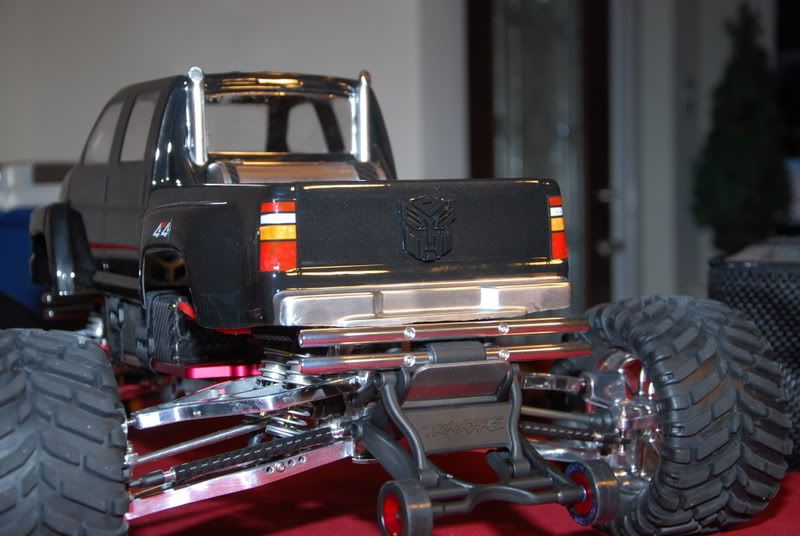 I don't own a Savage. I only have the Emaxx with the two Topkick bodies. I did put a Transformer emblem on the back of the black topkick.