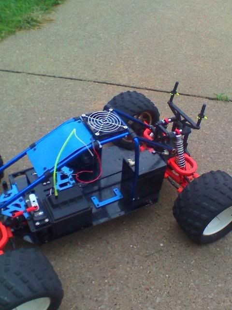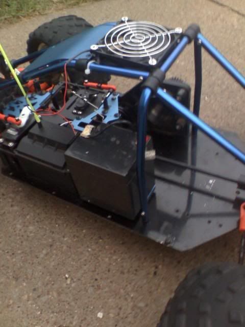 Ok here is a few pics of the battery placement. In the pics I am using a 4.5ah 12v lead acid which is the same size and the 5ah 12v. I also have a few pics of the fan mod I did. As you can tell its dark and gloomy outside. Its rained all day and is suppose to rain tommoro...