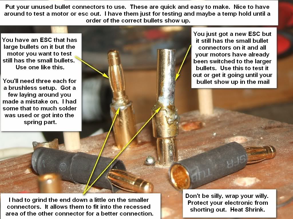 6.)always solder one battery lead at a time....leave the other end shrink wrapped untl your done with the first.