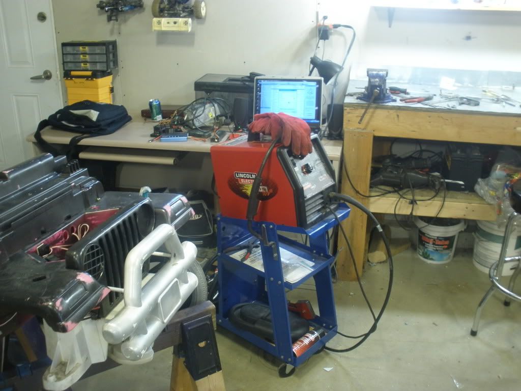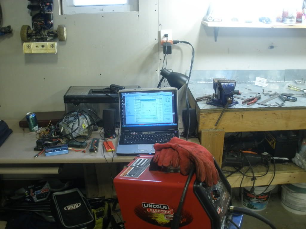 for wheels, in the rear we have 13.5"x4" pneumatic wheels from tractor supply, and the fronts have 13.5"x1.5" There is only 1 pic and video of tonight, as we do have finals tomorrow... but stay tuned for more!