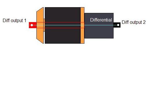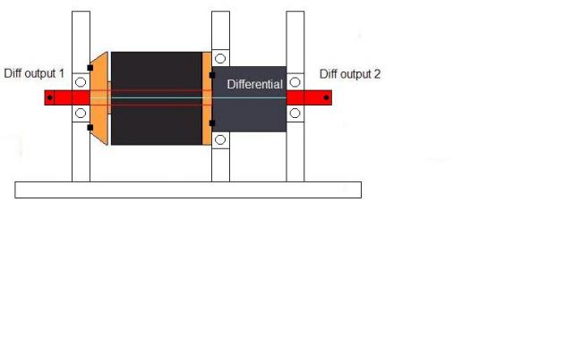 Alright, here it is. I hope you guys understand the drawing... the red shaft is a custom made shaft to replace one of the diff output shafts. It will travel through the outrunner (replacing the stock unit), and somehow be seperate and free from the outrunner stator AND rotor.