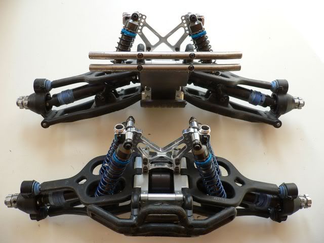 Personally, I think you should go with the strongest bashing suspension made, the UE EXT Suspension...you won't break those! Also, you need to be running either UE Supershocks or their Ofna counterparts (Like Ofna Ravager Rear Shocks).